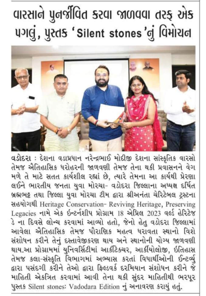 Silent Stones is a heartfelt celebration of Vadodara’s rich cultural and architectural heritage, brought to life by Shree Ananta Charitable Trust (ACT). This beautifully curated book invites readers on a journey through the hidden gems and timeless monuments of Vadodara. Places that stand silently yet profoundly as custodians of history, art, and legacy.